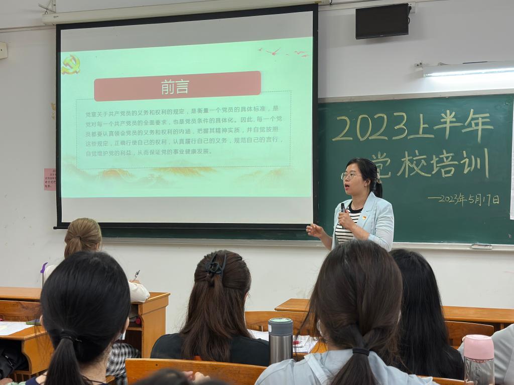 公司员工第三党支部书记许素美在白云校区讲授以《做一名合格的党员——老员工党员的权利与义务》为题的专题党课。学院专职组织员徐辉文在白云校区讲授以《永远跟党走,启航新征程——党员发展流程》为题的专题党课。
